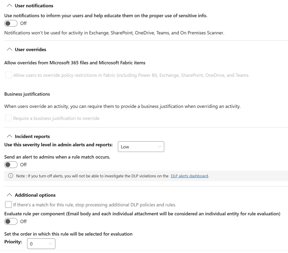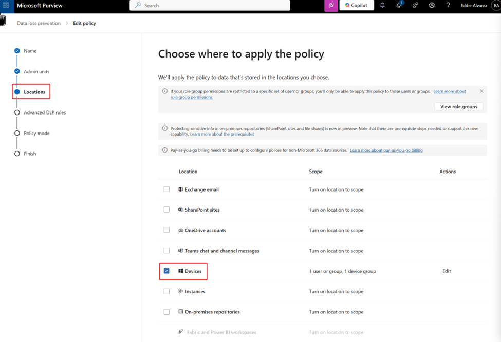 - Navigate to Solutions > Data Loss Prevention in Purview and select Create Policy (or edit an existing policy)