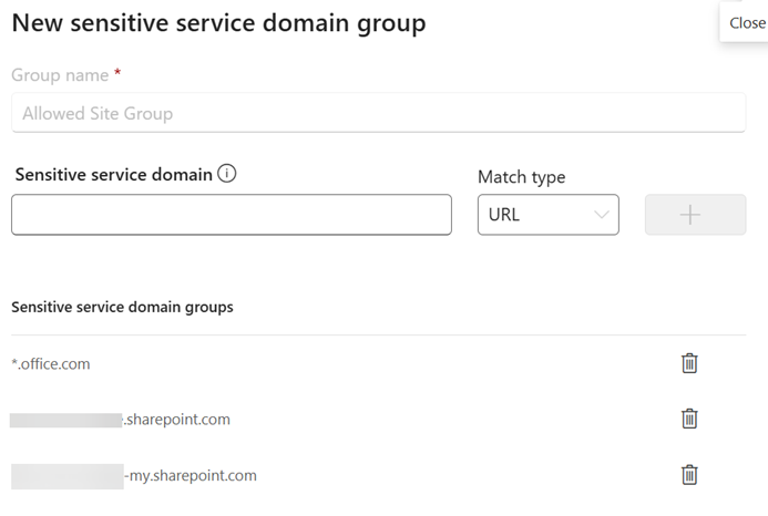 Important: Even though we will not be adding websites to the Service domains list, you want to make sure the drop-down for this setting is set to Block, as it is in the screenshot below. Having it set to Allow made my policy do weird things, like make the DLP policy not do what it’s supposed to!
